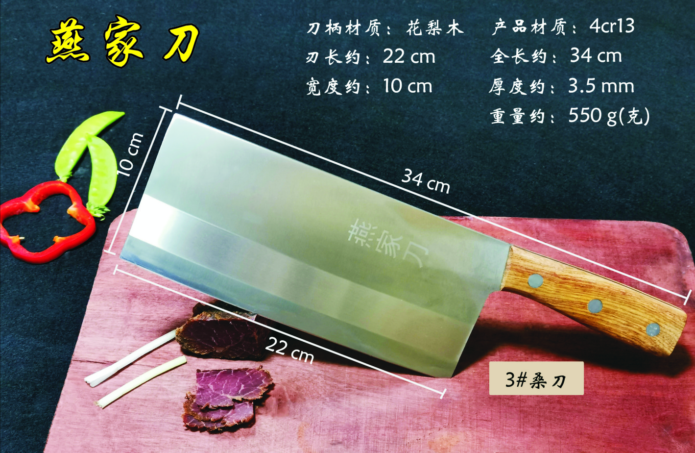 樂山燕家刀具有限公司(公司前身為燕佳鐵匠鋪),公司坐落于美麗的佛都之鄉(xiāng)樂山嘉州,在全國各地有上千家代理經(jīng)銷點(diǎn),公司專業(yè)銷售、設(shè)計(jì)、制作各類刀具。秉承一貫鍛造三精要求,即選料精、用料精、工藝精。所選材料全部產(chǎn)自滇東鐵礦優(yōu)產(chǎn)區(qū)。本品牌刀具堅(jiān)持千挑萬選為材,千錘百煉為刀的手工鍛造工藝宗旨。具有鋒利耐磨、持久耐用,用料上乘,硬度高、韌度強(qiáng)的特點(diǎn)!